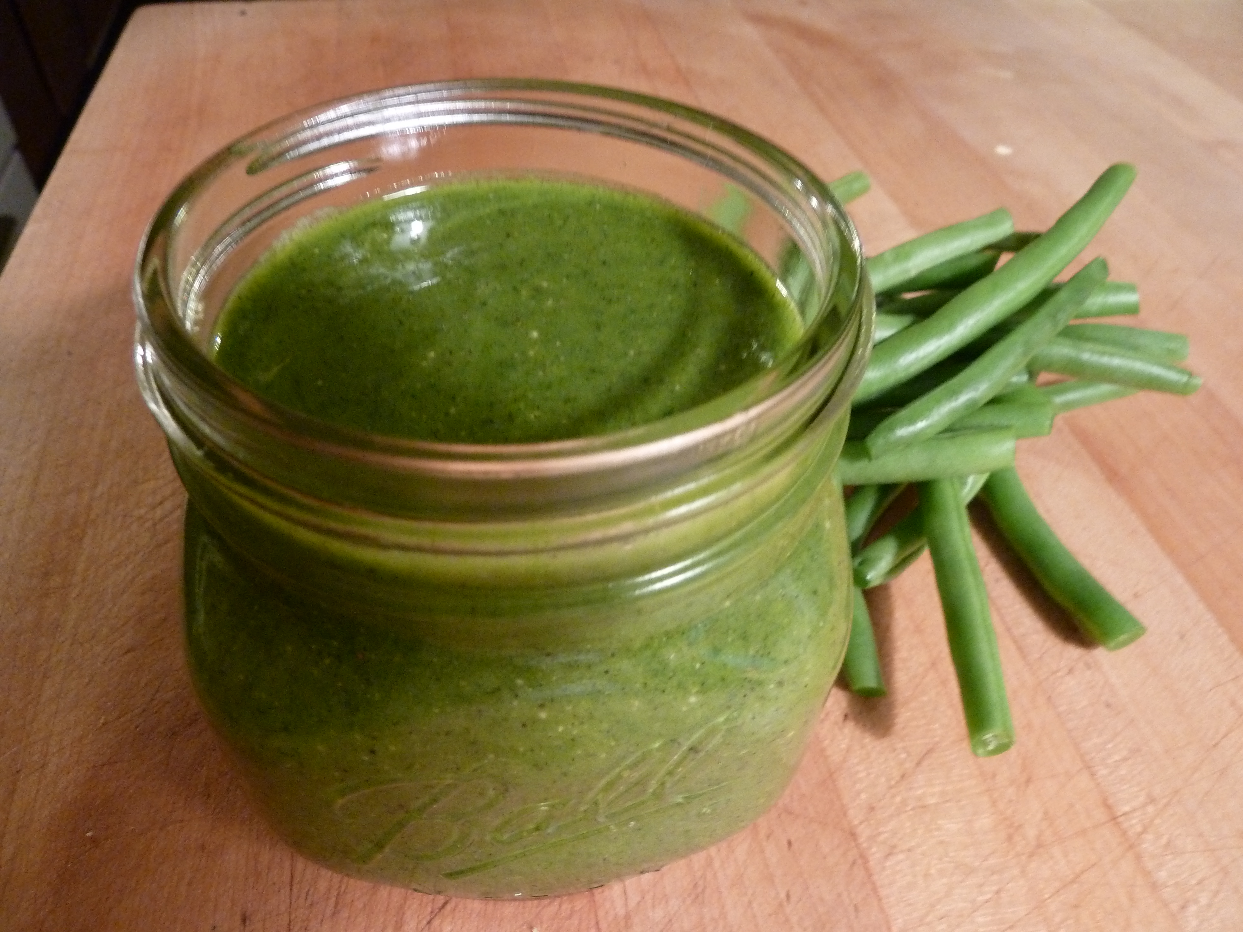 Save out a handful or basil leaves, and then blend all remaining ingredients well in blender or Vitamix until smooth and creamy. Taste and adjust for salt – this should be well salted and fairly intensely flavored, as a little goes a long way. Add remaining basil leaves and blend briefly, maintain a little texture. (You can add in a few more nuts here too, if you want a little crunch). Use at once or keep in glass jar with a puddle of olive oil on the top to keep it from going brown. Will keep 1 – 2 weeks in the fridge.
