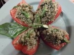 Pesto is not just for pasta- its great on steamed potatoes and vegetables, and is fantastic mixed with quinoa. If, like me, you never thought “fantastic” and “quinoa” should appear in the same sentence, check out Pesto-Quinoa Stuffed Tomatoes with Roasted Portabellos