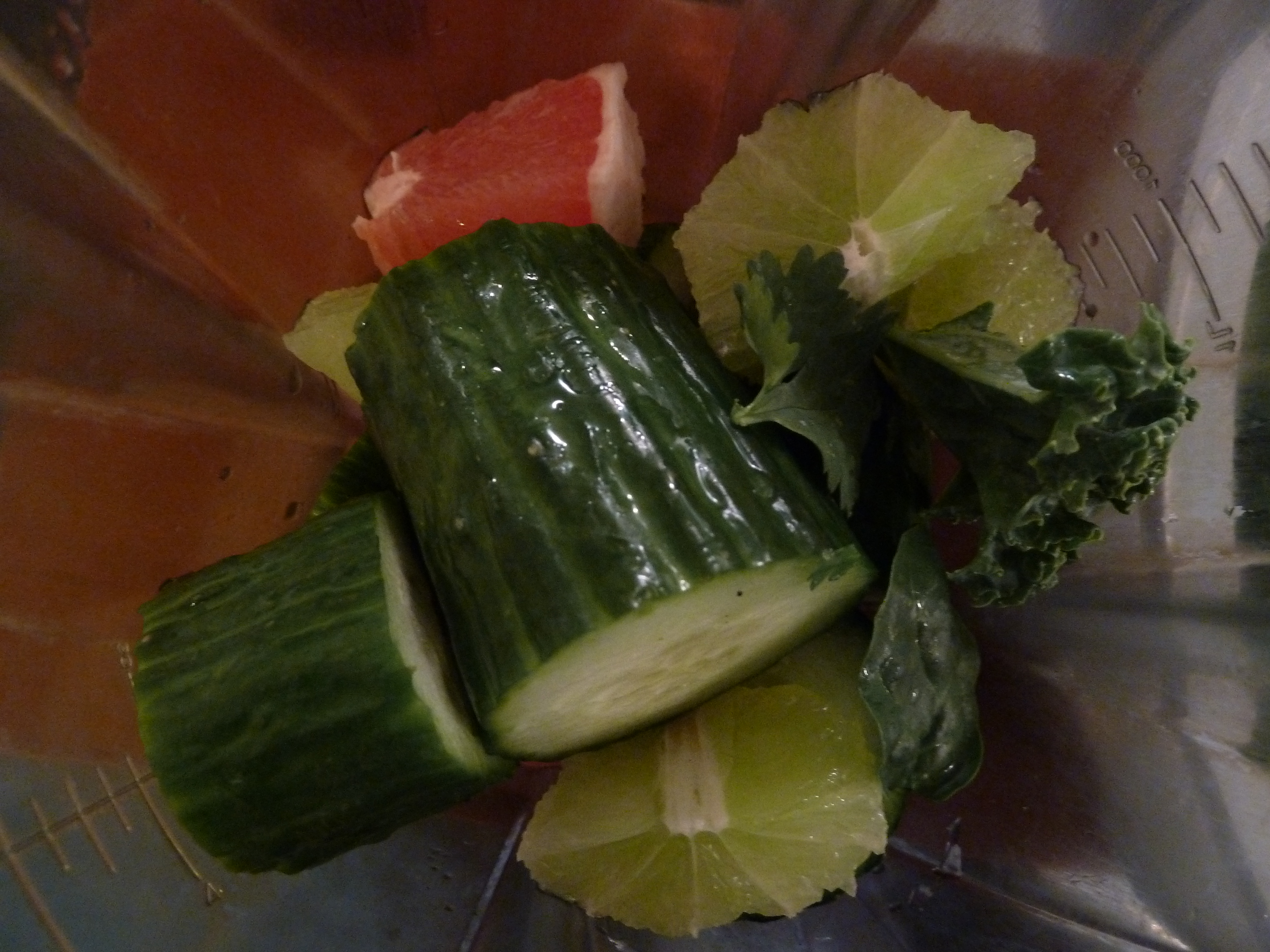 You can play with this with whatever greens you have on hand, and the base I usually start with is the grapefruit, lime and agave to sweeten.